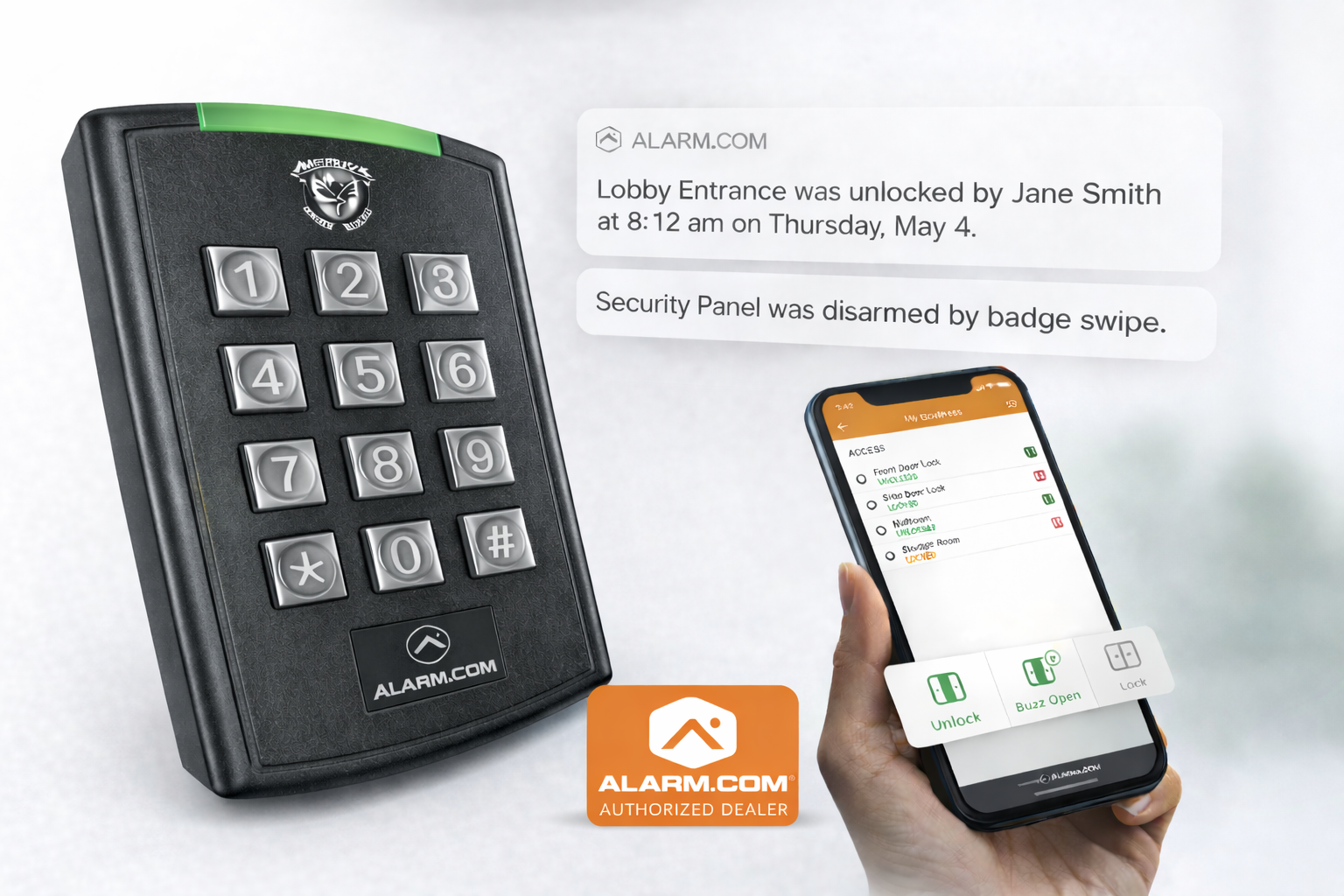 - Smart Credentials – Keyless entry via mobile devices, fobs, key cards, or biometric options.